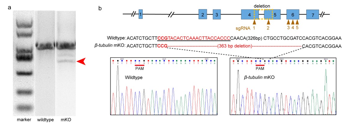 CRISPR/Cas9系统介导的长牡蛎 -tubulin基因的长片段缺失