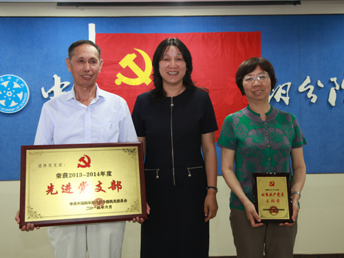 周峰宣读了沈阳分院机关党委2013-2014年度“一先两优”表彰决定,马越红、机关党委委员陆祖祥和毕伟分别向获奖集体和个人颁发了奖状。退休支部书记苏尚金代表获奖的先进党支部发言,他介绍了退休党支部在建设学习型党支部和帮助困难党员等方面的先进事迹,表示将继续发挥退休党支部的积极作用和党员的先锋模范作用。