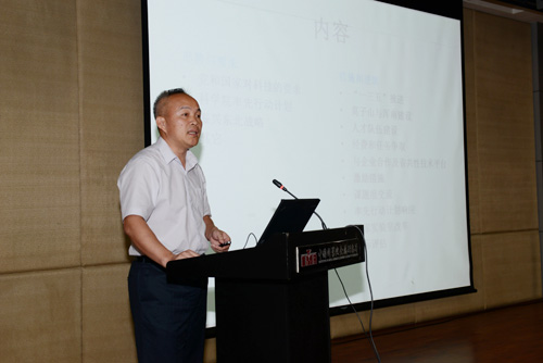 党委副书记、副所长谭若兵作题为《面对机遇与挑战,共凝认识和力量——响应率先行动计划,着力推进中心工作》的主题报告