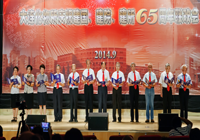 整个联欢会过程中,观众们沉浸在一片兴奋与激动的海洋中,欢乐祥和的气氛一浪高过一浪,送给台上演员的掌声一阵高过一阵——由《所志》编写组创作,所咨询委12位委员深情演绎的配乐诗朗诵《献给建所65周年》,完整地回顾了大连化物所走过的65年的光辉历程,由衷地倾诉了老一辈化物所人对研究所的热爱与忠诚;由平均年龄75岁的石油大学校友会20位老同学们合唱的《我为祖国献石油》,款款地唱出了老同学们当年为祖国科研事业贡献青春力量的无悔与豪迈;由平均年龄82岁的3对老夫妻手牵手献上的歌伴走台秀《最浪漫的事》,掀起了观众们尘封的青春记忆,触动了在场每一位化物所人柔软的心灵;在《异地老同志问候视频》中,观众们看到了久违的当年一起奋斗的老同事那熟悉又亲切的面庞,听到了他们发自内心的对祖国、院里和所里的真心祝福和对所里人的真诚问候。整台晚会近200名演员,通过女声组合《今天是你的生日,中国》、男声四重唱《父亲的草原母亲的河》、舞蹈《红旗颂》、《小苹果》、《吉祥谣》、朗诵《中国梦、我的梦》、器乐合奏《我和我的祖国》、《好日子》、合唱《龙的传人》、《共和国之恋》等节目为庆祝65周年齐声喝彩,大家用各自不同的方式表达对祖国、对中科院、对化物所的热爱和祝福。