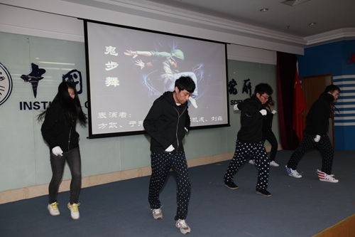 激情的现代舞“光芒”拉开了联欢会的帷幕,一曲“雪中情”让现场观众沉浸在优美的旋律中,“回心转意”电吉他弹唱、“当我想你的时候”男声独唱、“因为爱情”男女对唱、“鬼步舞”街舞等精彩节目赢得阵阵掌声,“草裙劲舞”和“饼干传情”两个小游戏将现场气氛推上高潮。