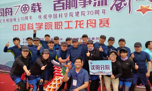 为迎接新中国成立70周年及中国科学院建院70周年,5月29日,“风雨同舟七十载,百舸争流创辉煌”首届中国科学院职工龙舟赛在厦门龙舟池开赛。在全院20支代表队中,沈阳分院龙舟队齐心协力、顽强拼搏,经过两轮的激烈角逐,以总成绩3分08秒15夺得本次龙舟赛季军,展现了沈阳分院职工昂扬向上、奋勇争先的精神风貌。