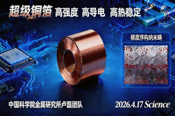 近日,这一难题迎来重要突破。中国科学院金属研究所沈阳材料科学国家研究中心卢磊研究员团队与合作者, 成功研发出一种兼具超高强度、高导电性与优异热稳定性的铜箔,相关研究结果于北京时间2026年4月17日在《科学》(Science)周刊在线发布。